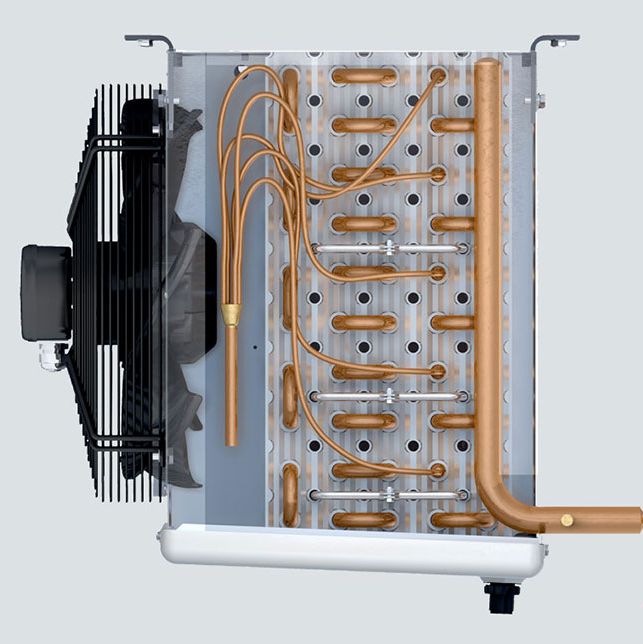 Воздухоохладители модельного ряда GEA Kelvion KUBA Compact DFB – это компактные потолочные воздухоохладители, специально разработанные для эффективного охлаждения в небольших холодильных камерах и помещениях с ограниченным пространством. Вместе с тем они максимально надежны, обеспечивают равномерное распределение охлажденного воздуха, рекомендованы для применения в торговле и пищевой промышленности.