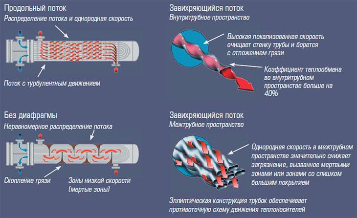 Принцип работы этого теплообменника основан на противоточном движении рабочих сред. Горячая среда проходит через витые трубки, а холодная среда - вокруг них в кожухе. Благодаря этому, происходит эффективный теплообмен между средами, что позволяет достичь оптимальной температуры.